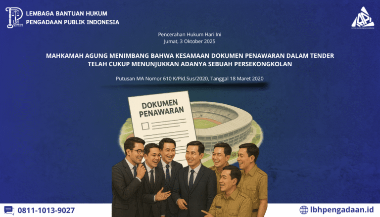 Di tingkat Kasasi, Majelis Hakim Agung menyatakan Judex Facti PTTUN Banjarmasin sudah benar dan tidak terdapat kesalahan dalam penerapan hukum dengan pertimbangan bahwa tahap Sanggah dan Sanggah Banding merupakan upaya administratif atas dikeluarkannya suatu Keputusan Tata Usaha Negara, yang dalam hal ini adalah Berita Acara Hasil Pemilihan. Oleh karena itu, jawaban dari Sanggah atau Sanggah Banding bukanlah objek sengketa Peradilan TUN.