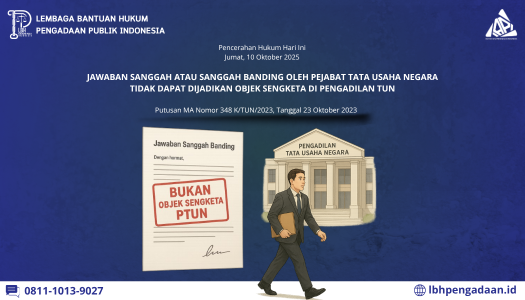 JAWABAN SANGGAH ATAU SANGGAH BANDING OLEH PEJABAT TATA USAHA NEGARA TIDAK DAPAT DIJADIKAN OBJEK SENGKETA DI PENGADILAN TUN